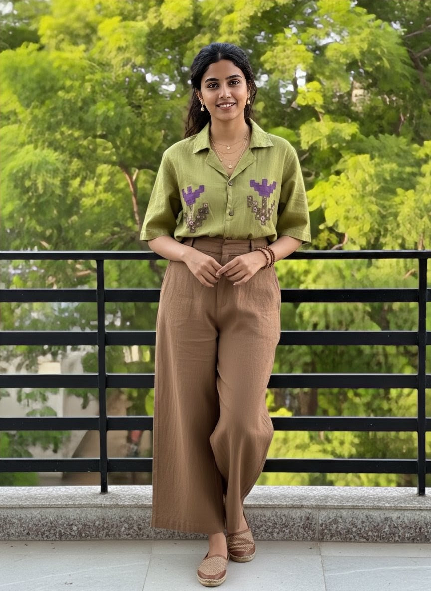 Bring art to your wardrobe with the Pixel Flower Shirt. Crafted from 100% breathable cotton, this piece is designed for all-day comfort and effortless style. Each shirt is handmade and hand-embroidered, making every piece one-of-a-kind.