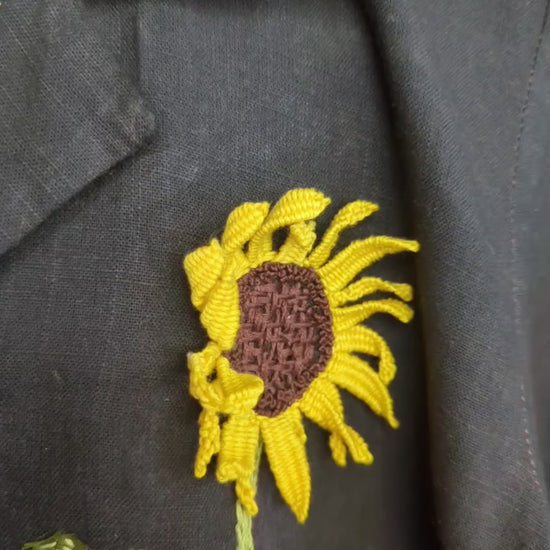 - Technique: Woven picot embroidery for raised, sculptural petals